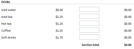 This one started as a spreadsheet we created to calculate catering costs. After a while, we found that people were using old versions with old prices. With SpreadsheetConverter, we could convert our spreadsheet to a web page calculator that people could use directly on our internal web.